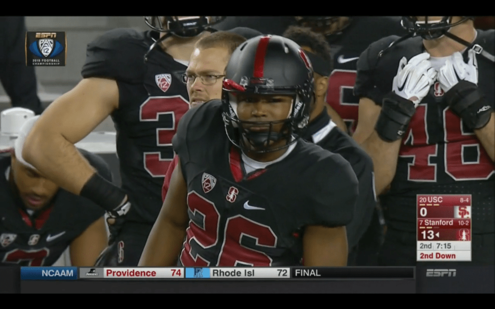 The USC defense started out with some costly penalties and being able to hold McCaffrey to marginal gains. The Stanford offense quickly made it to the red zone before the USC defense stiffened up and held the Cardinal to a field goal. The trend continued throughout the first half as a USC’s offense was unable to get anything going. Stanford made it to the red zone for all four of their meaningful first half drives, but came away with only 13 points. I would consider it a victory for USC’s defense, considering USC’s offense left them out to dry with under 9 minutes of possession in the first half.
